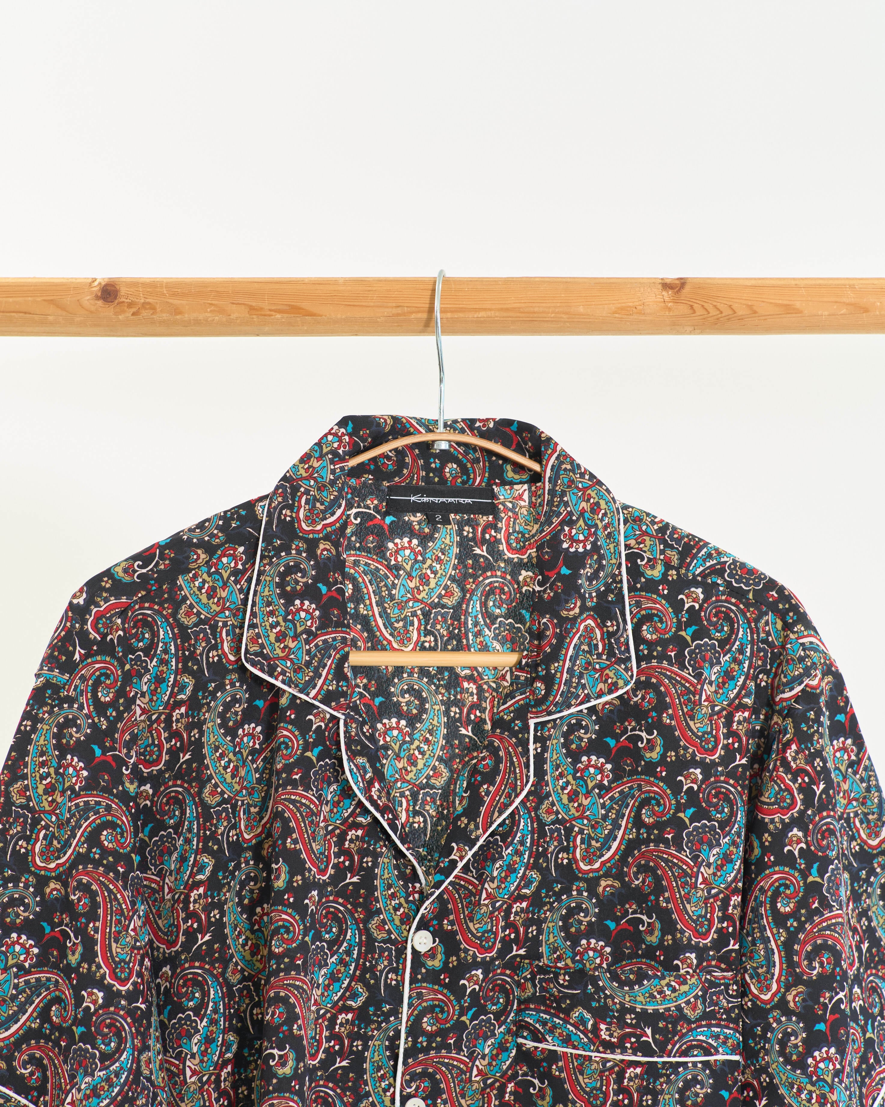 シルクコットンの長袖とパンツのセットアップは、同柄の袋でお届けしますのでギフトにも最適です。シワになりにくく持ち運びも便利ですので、旅行やお家でのリラックスタイムにぜひご活用ください。