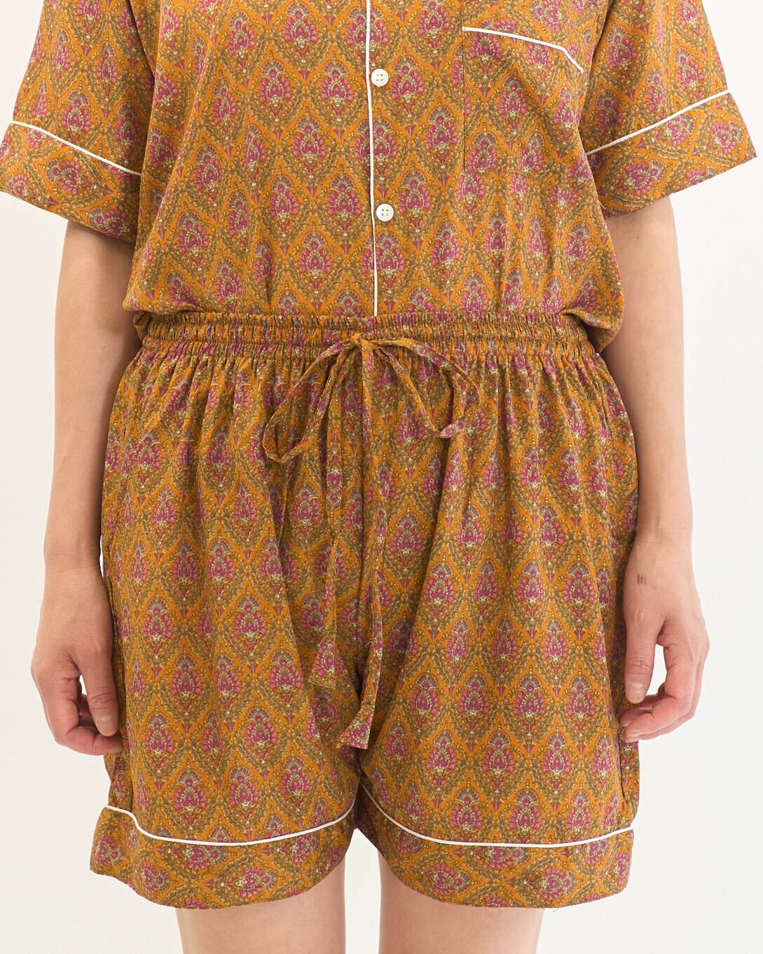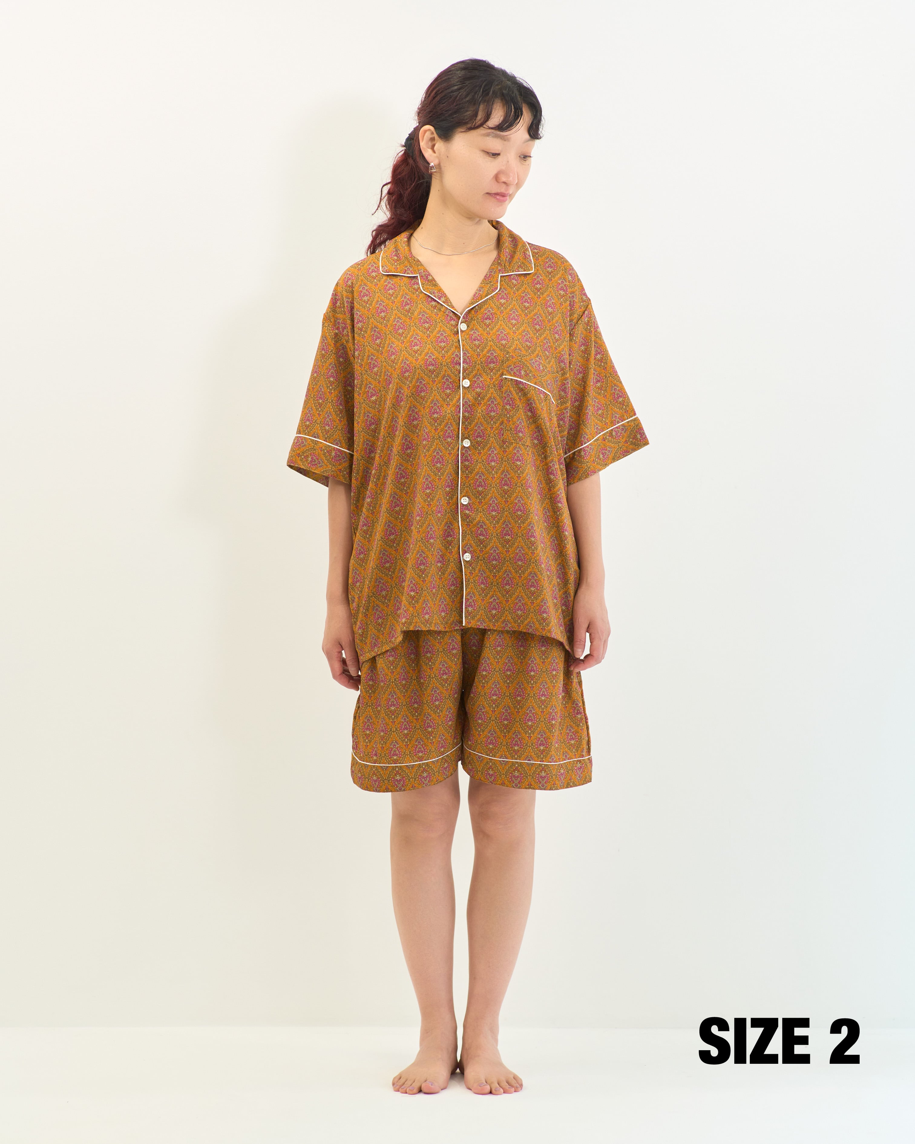 シルクコットンの半袖と短パンのセットアップは、同柄の袋でお届けしますので、ギフトにも最適です。シワになりにくく、持ち運びも便利なので、旅行やお家でのリラックスタイムにもぜひご活用ください。
