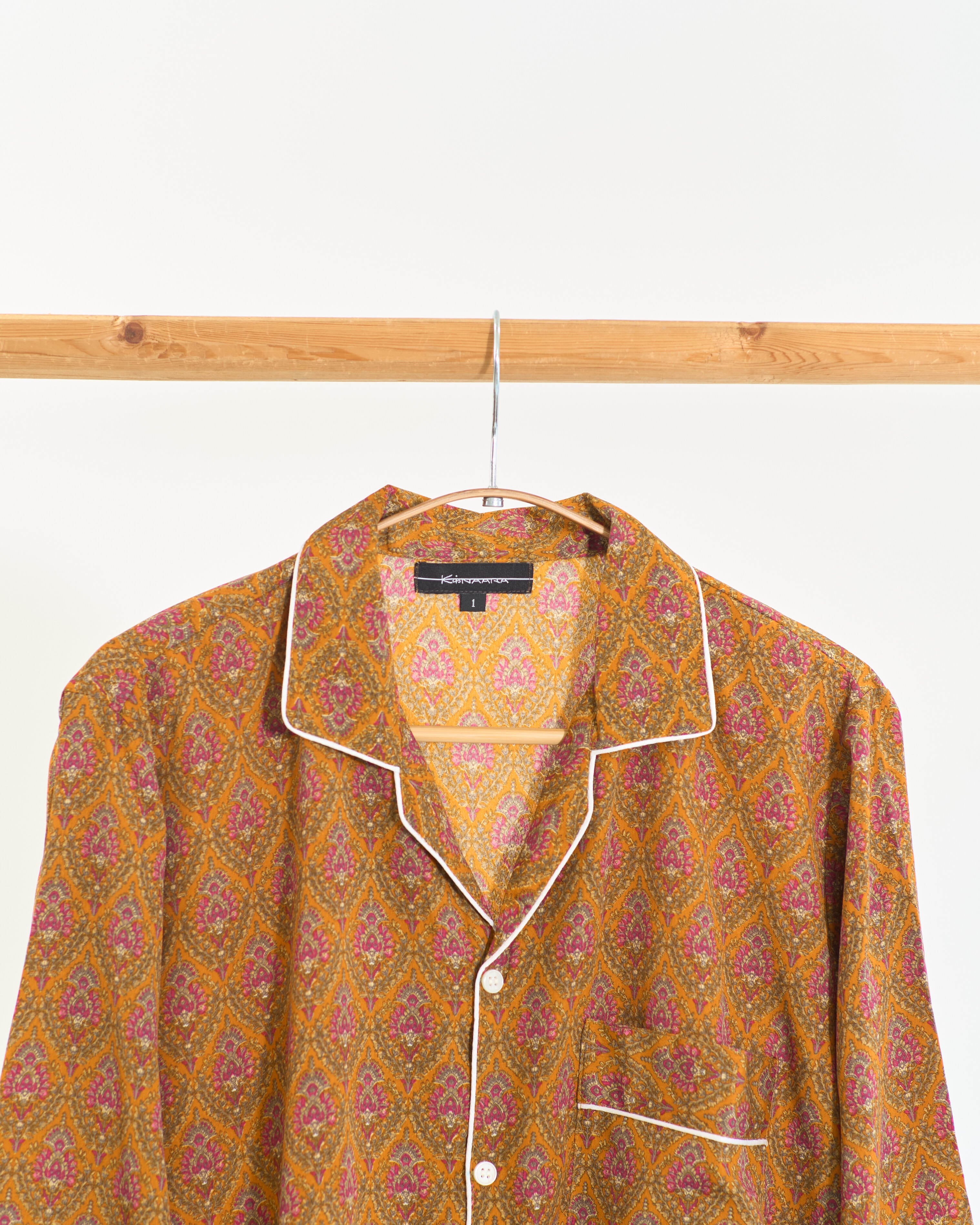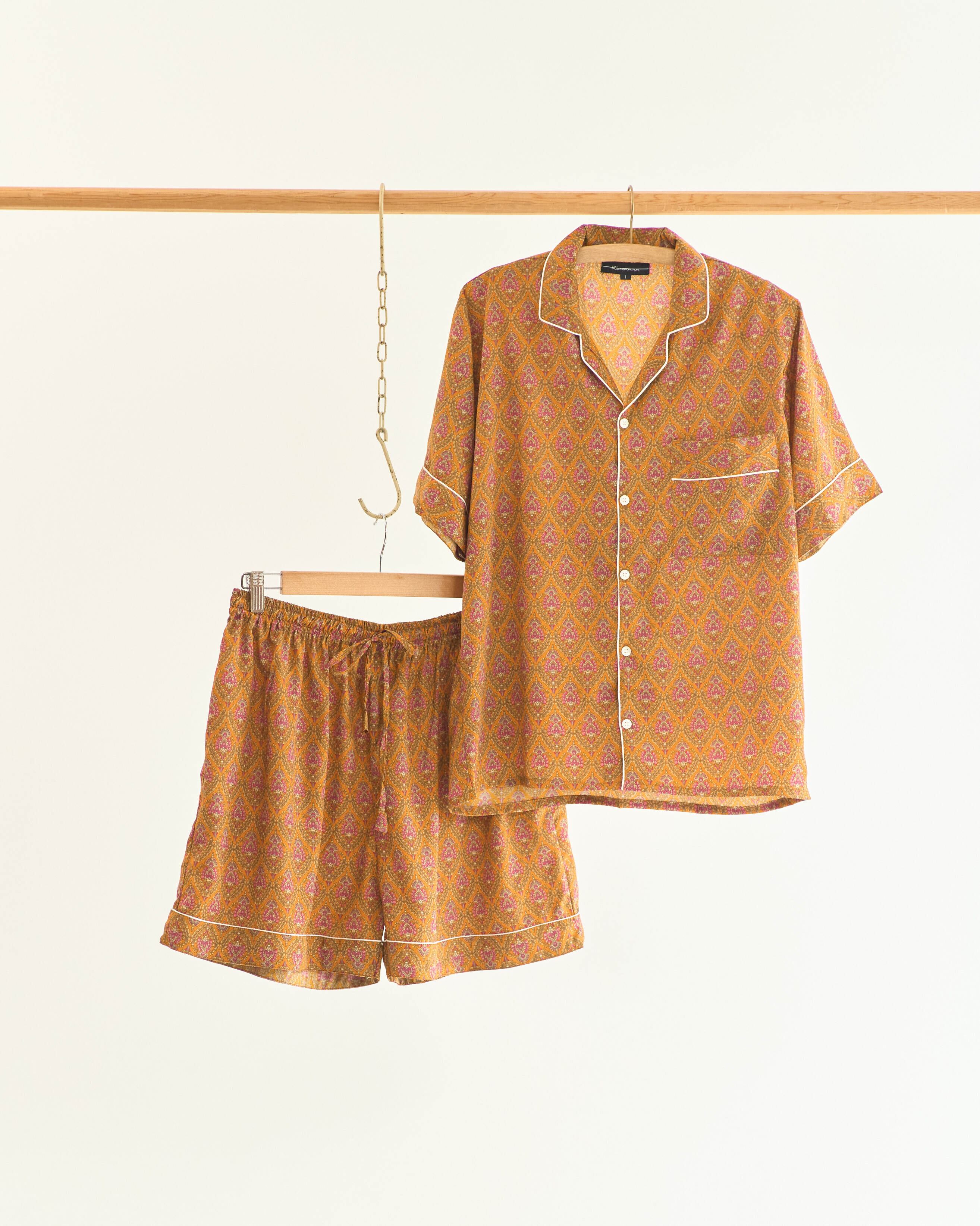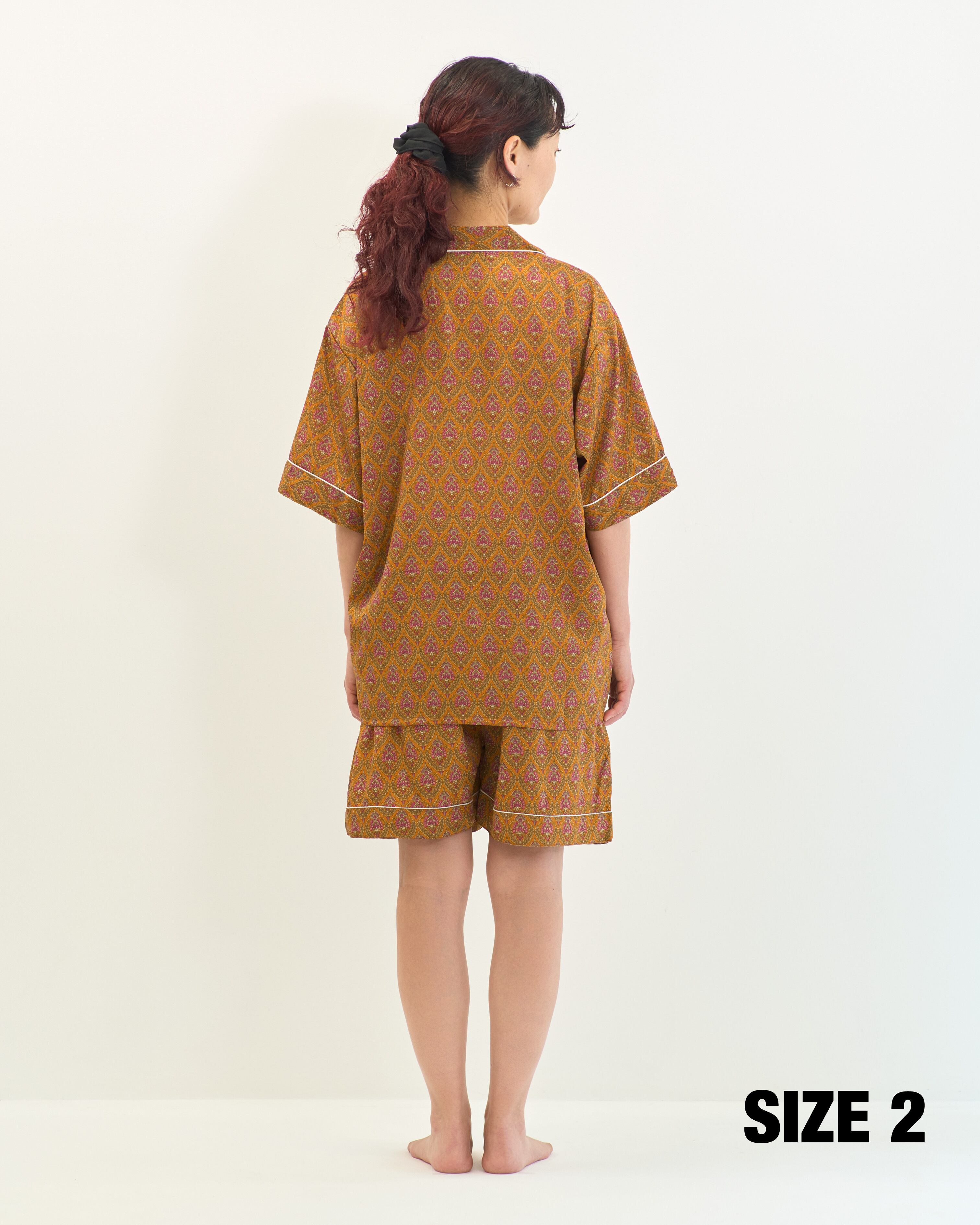 シルクコットンの半袖と短パンのセットアップは、同柄の袋でお届けしますので、ギフトにも最適です。シワになりにくく、持ち運びも便利なので、旅行やお家でのリラックスタイムにもぜひご活用ください。